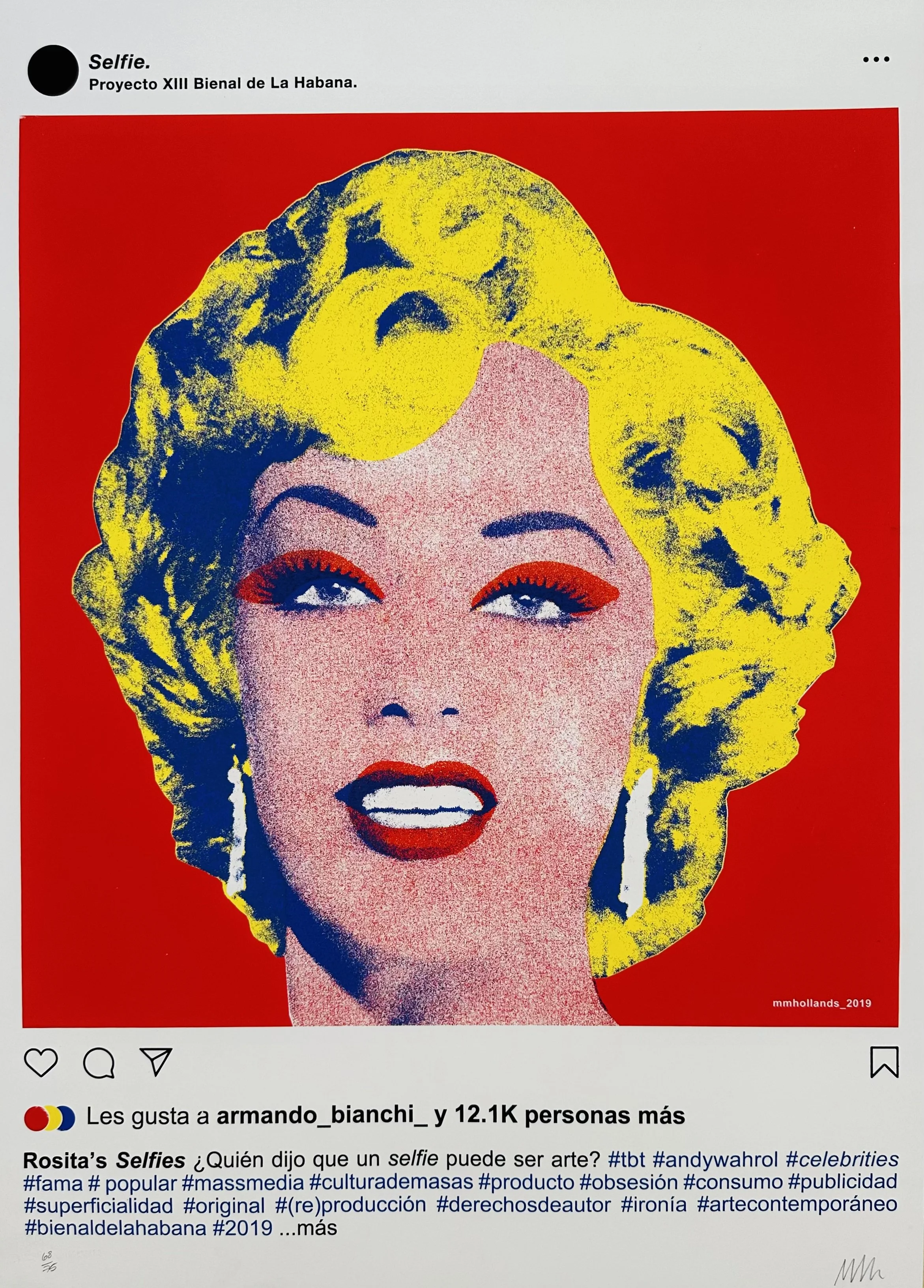 For this poster, which celebrates Pop Art and the selfie as a medium for portraiture, the artist incorporates an image of Cuban diva Rosita Fornés (1923–2020), often referred to as Cuba's Marilyn Monroe, as a homage to the iconic Cuban vedette.