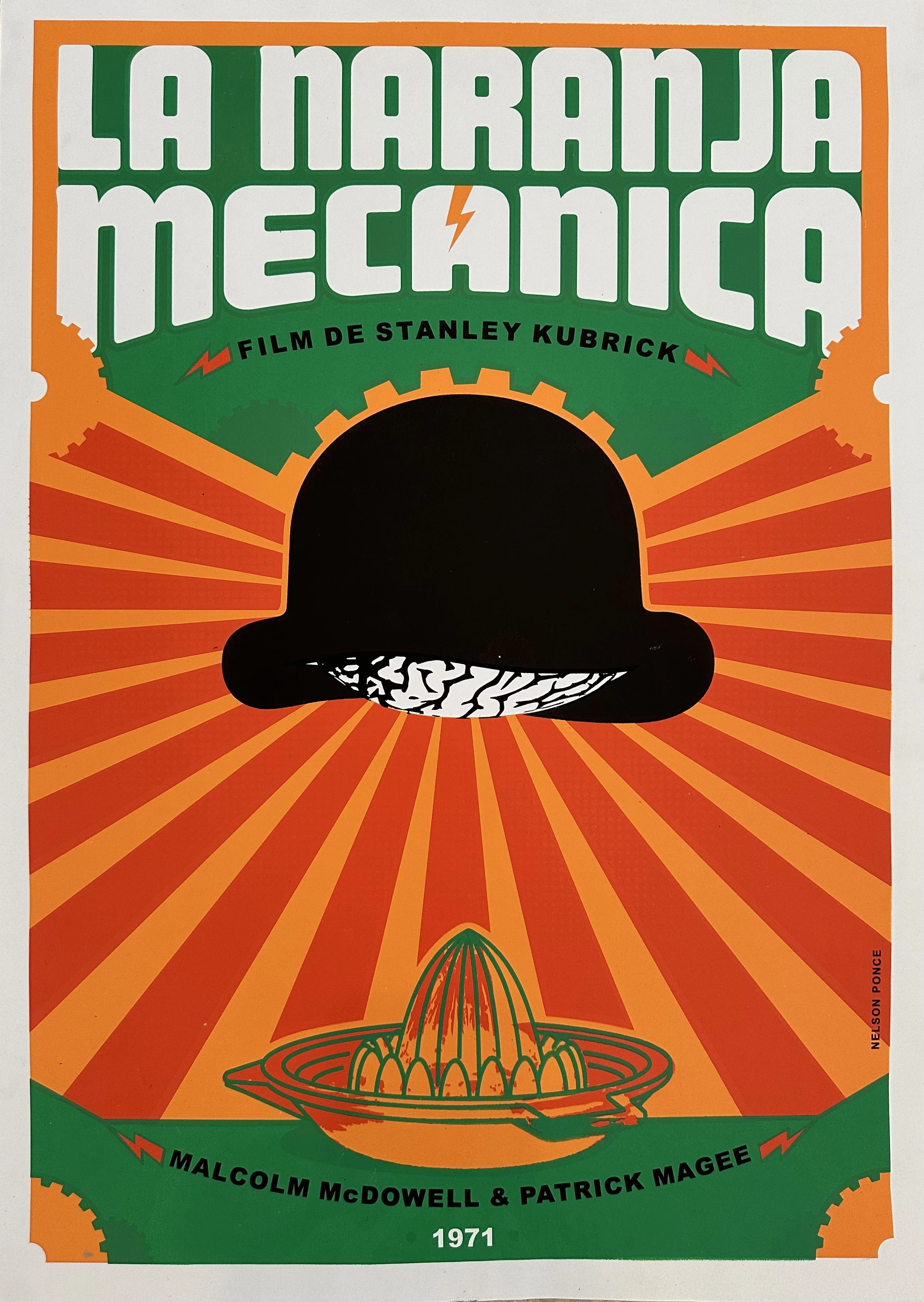 This poster for Stanley Kubrick’s classic Clockwork Orange was designed by the Cuban artist Nelson Ponce who is a graphic designer and illustrator and a professor at the ISDI (Instituto Superior de Diseño Industrial) in Havana.