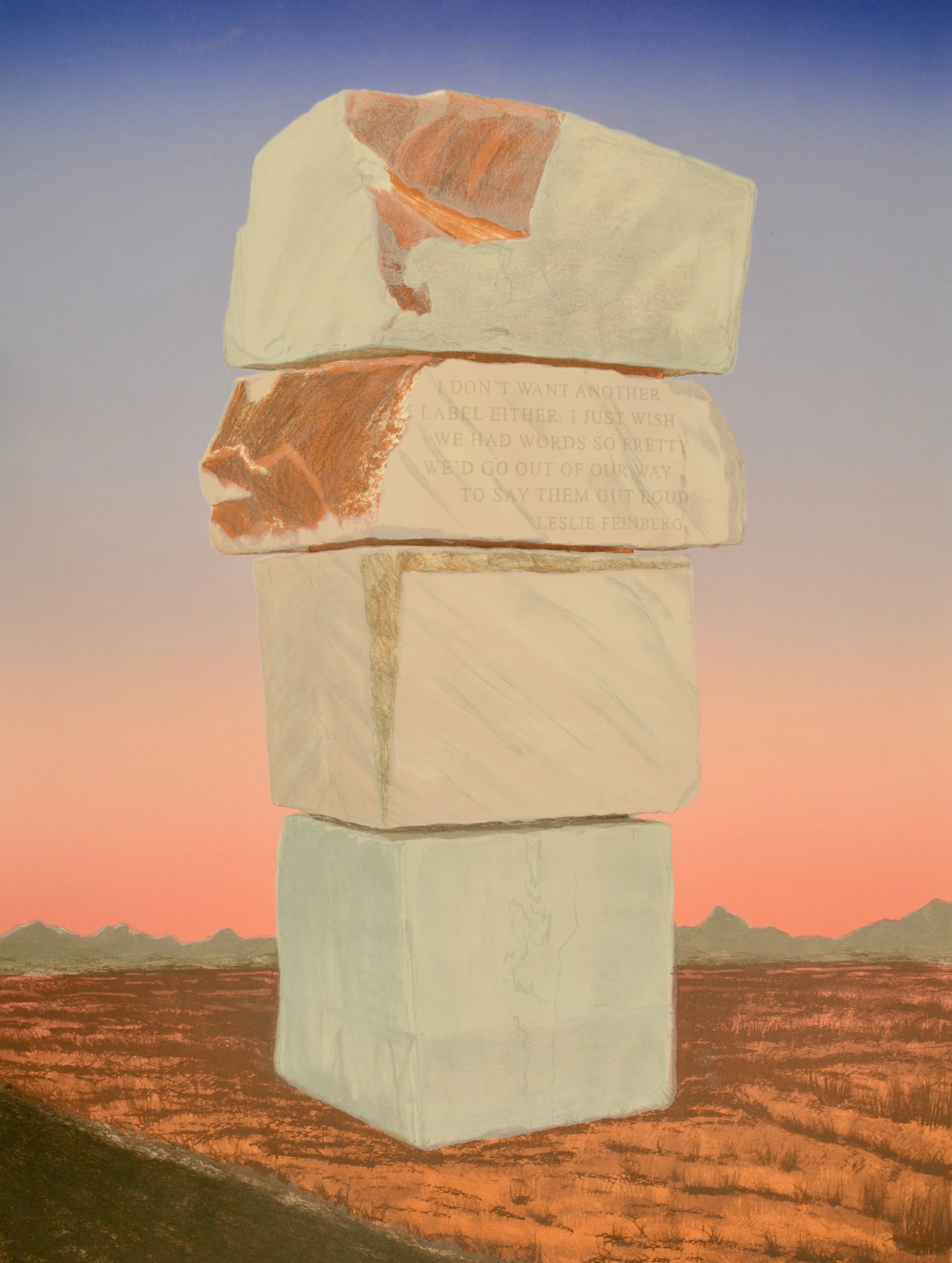 Cambridge, MA – A R E A presents LIFE LINES, a new body of work by Emily Lombardo that weaves a personal and cultural examination of lesbian lineage. The artist approaches this study as a genealogist who is piecing together the stories of her lesbian family, which are fading from cultural memory. Lombardo conjures surreal images of struggle and strength, which stretch across time to consider where we stand today. LIFE LINES is honoring the artists, fighters, and community that struggled for civil rights and helped her to find her voice. The public is encouraged to take rubbings from Lombardo’s woodblocks to create their own piece of visual history.