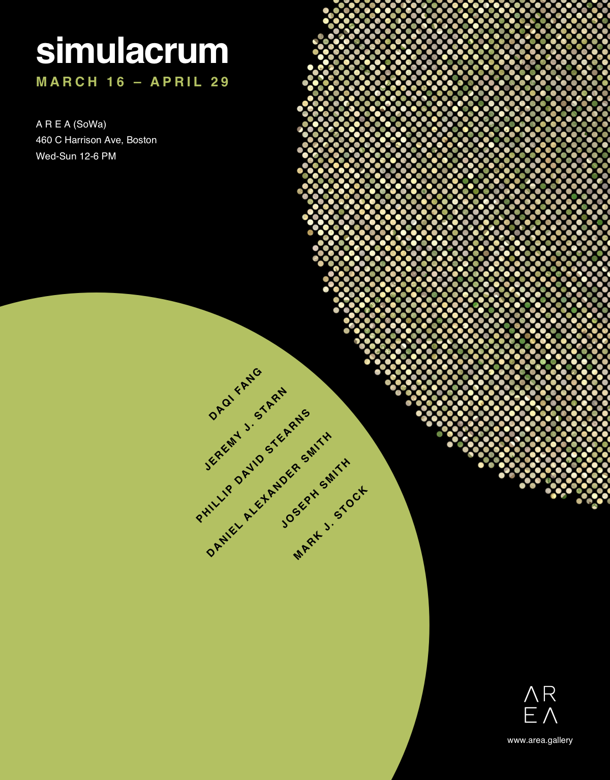 Simulacrum, curated by Jeremy J. Starn, explores a reality exclusively built upon representations of programmed life that is no longer distinguishable from the innate. The included artists use maps, sounds, renderings, projections, algorithms, and images to grapple with how digital representation precedes any relationship with physical reality.