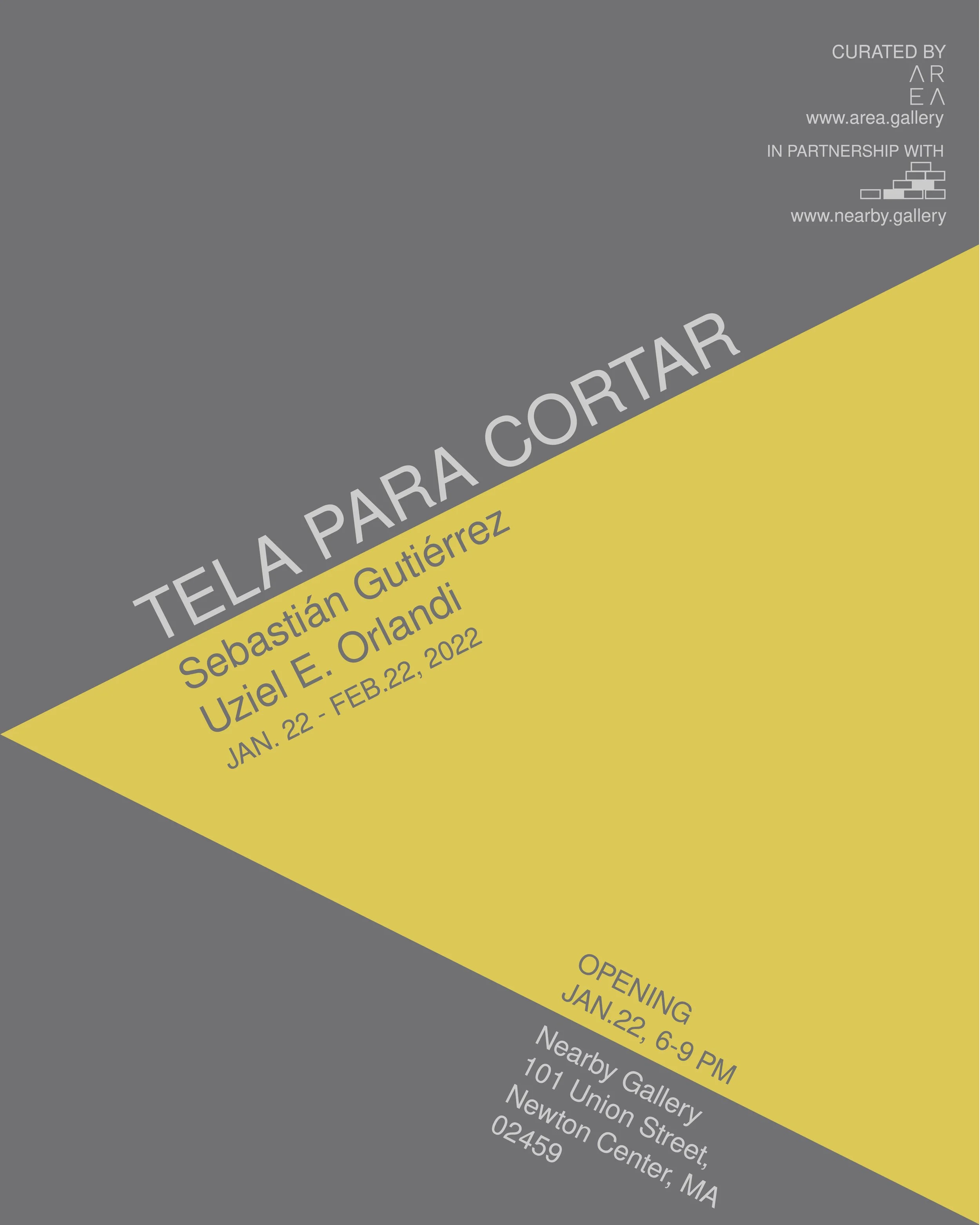 Tela para cortar (Fabric to cut), is a phrase in Spanish commonly used to refer to a topic, that to address it, requires dwelling on several nuances, and involves further meticulous interpretations and analysis. For this exhibition curated by A R E A founder David Guerra, Puerto Rican artists Sebastian Gutierrez and Uziel Orlandi use textiles to expose dimensions of consciousness, and seek a new visual language.